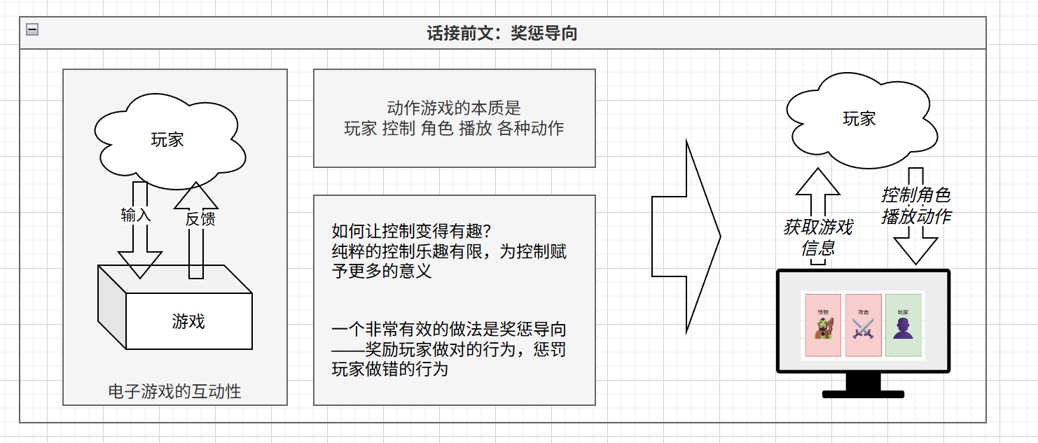 这里我们再精准描述下第一次“奖惩”:怪物发动了某种攻击(进入了某种动作,产生了某种形式的攻击),而这种攻击,将会对玩家行为进行某种筛选: