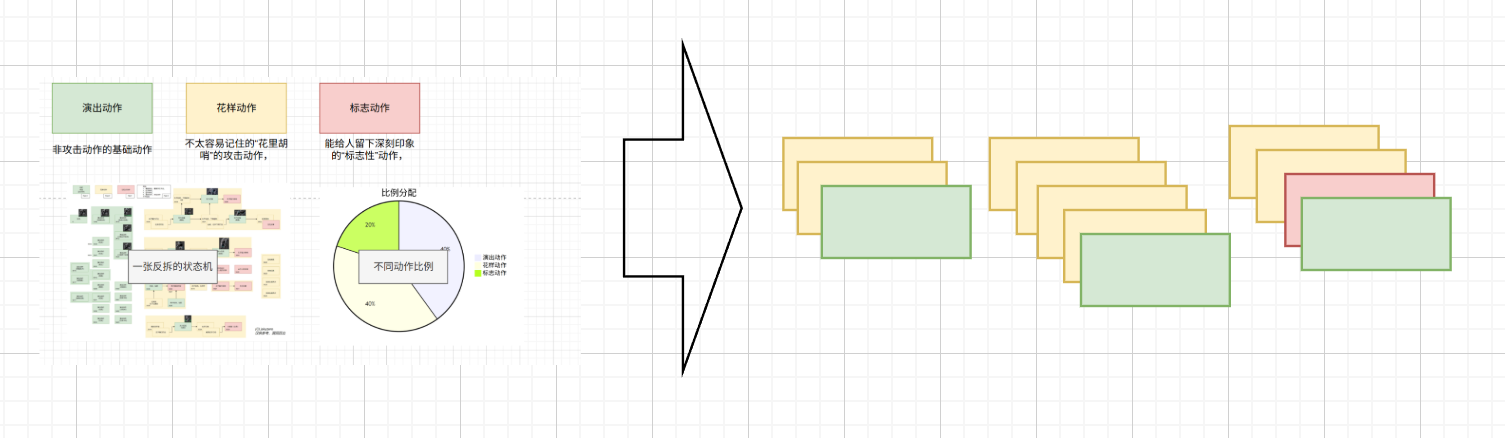 这样编排流程时,其实我们就是交错安排常规攻击、演出破绽、记忆点,这三种类型的行为: